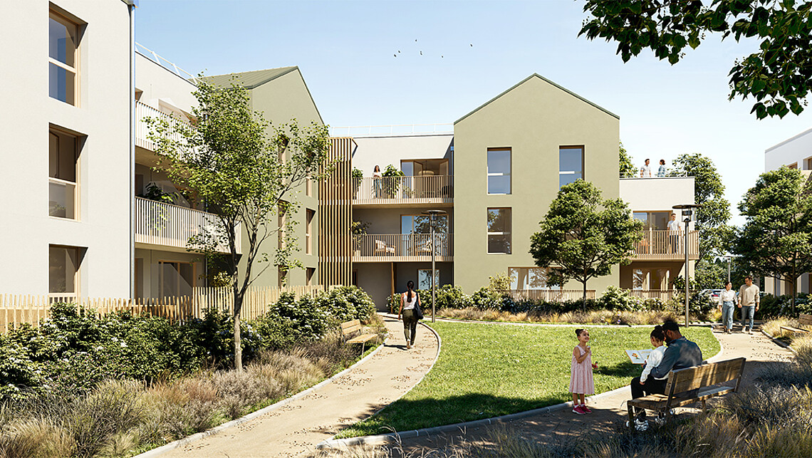 Située rue de la Mairie, la résidence est un ensemble réunissant 25 appartements du T2 au T4 et 10 maisons individuelles groupées T4 et T5, organisés autour d’un cœur d’ilot paysager d’environ 700 m². Chaque logement bénéficie d’un espace extérieur (terrasse, balcon, loggia ou jardin). Entre nature, confort et maitrise architecturale, la résidence « Les Quatre Saisons » offre un cadre de vie pensé pour séduire, durablement. Avec ses volumes imbriqués, ses teintes nuancées et ses matières chaleureuses, le projet s’intègre parfaitement dans son environnement.