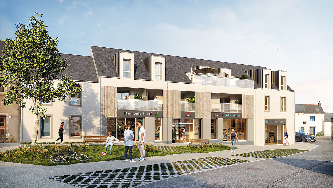 La résidence Taolenn se situe au cœur du centre historique, place Pierre Commelin, à deux pas des commerces et services de proximité. Elle se compose de 6 appartements de 2 ou 3 pièces ; chacun d’eux offrant des espaces extérieurs généreux et baignés de soleil. En rez-de-chaussée, trois cellules commerciales viennent enrichir l’offre locale et contribuer au dynamisme de la commune.
